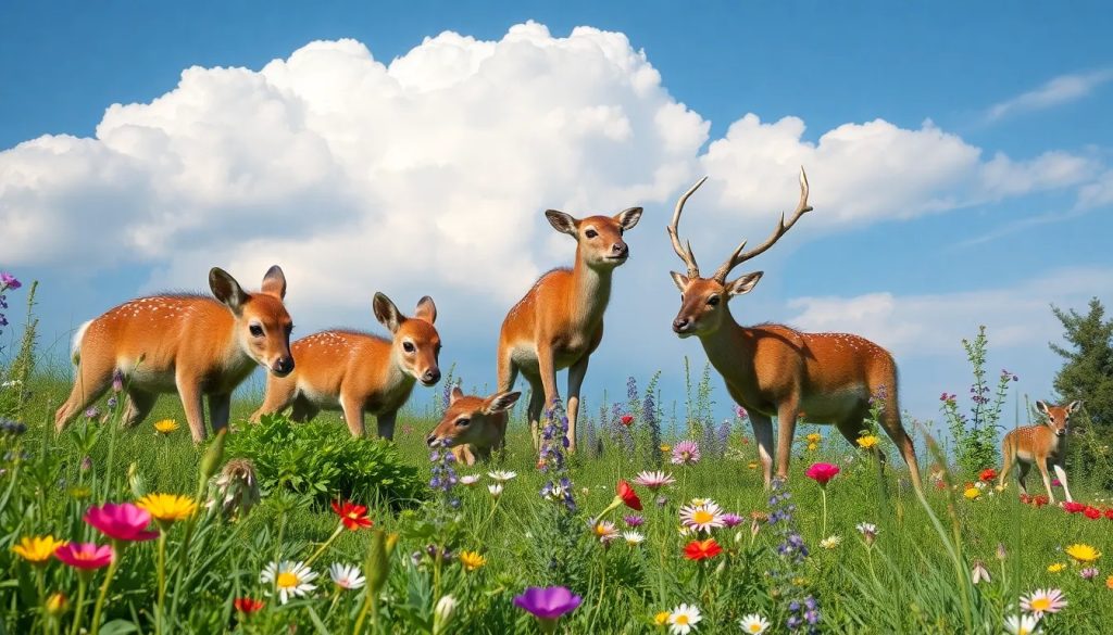 - Cervi: animali iconici delle foreste, che si nutrono di foglie, germogli e piante erbacee.